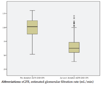 Figure 2. Box Plots of Estimated Glomerular Filtration Rate Before and 2 Years After Donation