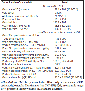 Table 1. Donor Characteristics, Demographics, Renal Function, and Renal Volumes