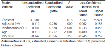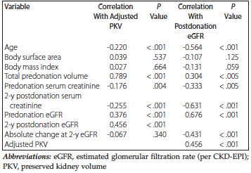 Table 3. Multivariate Analysis for Adjusted Preserved Kidney Volume and Postdonation Estimated Glomerular Filtration Rate