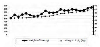 Figure 4. Correlation between the pig and liver weight.