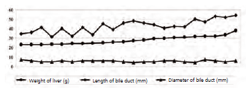 bile duct were measured. The liver’s weight also was measured after trimming off
