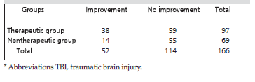 Fourteen days after cellular therapy, 38 of 97 patients (39.2%) with TBI