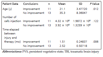 Table 2. The Improvements on Posttraumatic PVS After Cell Therapy (Case)