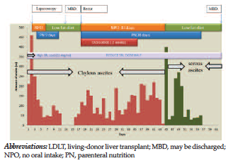 Figure 1. Clinical Course of the Patient With Chylous Ascites 6 Months After Living-Donor Liver Transplant