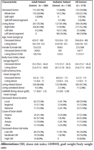 Table 2. Donor Demographic and Clinical Characteristics