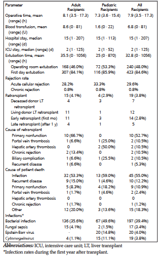 In all LT recipients, extubation was attempted prior to leaving the operating