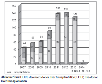 Figure 1. Number of Transplantations performed between 2007 and 2013