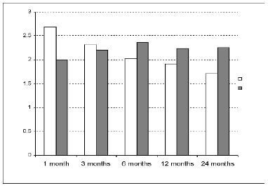 In patients in arm A, corticosteroids were completely withdrawn from 24.4% of patients by 1 year and in 46.9% of patients at 2 years, as opposed to 13.6% and 25.0% at 1 and 2 years, respectively, in patients in arm B. The mean steroid doses were 5.4 and 6.6 mg at 1 year and 5.2 and 4.9 mg at 2 years in arms A and B, respectively. These differences were not statistically significant.