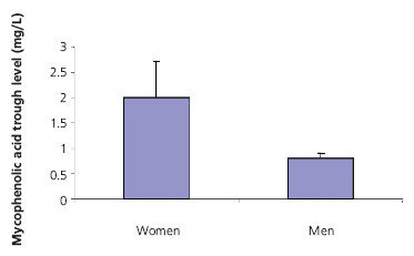 Figure 1. Correlation between the mean mycophenolic acid trough level and sex.
