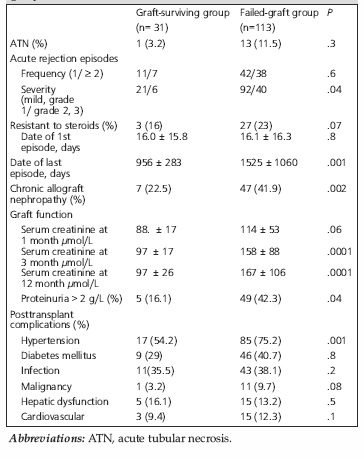 Table 2. Posttransplant clinical events in graft-surviving and failed-graft groups.