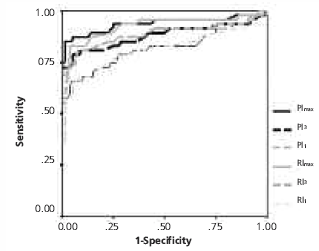 Figure 1. ROC curves of RI and PI values