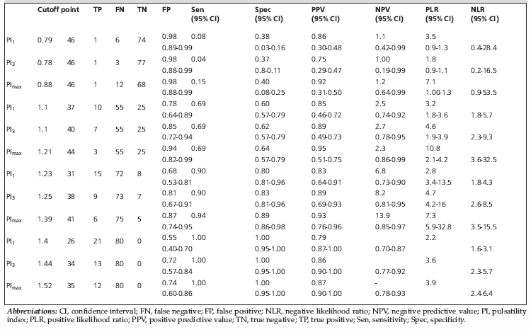 Table 6. Efficacy of different cutoff points of pulsatility index.