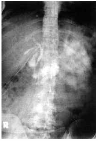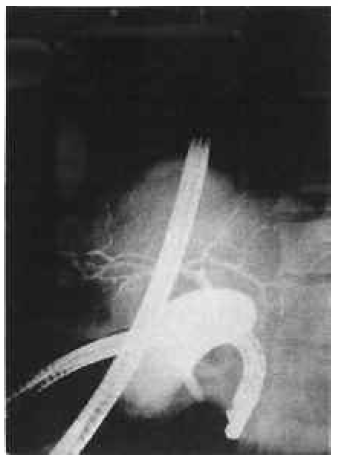 Figure 7. T-tube cholangiogram showing normal drainage, but no bile leakage.