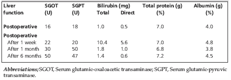 Table 2. Preoperative and postoperative results of liver function tests in donor to 20-year-old male adult.
