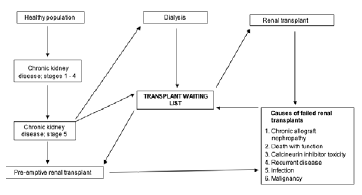 This overview has attempted to summarize the current strategies used to prolong renal allograft survival, facilitate organ donation, and reduce the annually increasing number of patients on renal transplant waiting lists. Because of the annual increase in the number of patients who must wait to receive a renal transplant, it is imperative that clinicians intervene proactively at various stages in the development the waiting list for that procedure (Figure). Prevention of the progression of chronic kidney disease, pre-emptive renal transplant, increasing the number of organ donations, and preserving transplanted kidneys are the best methods for resolving that issue.