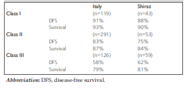 Table 1. Results of European group for blood and marrow transplant in B-thalassemiamajor patients in Shiraz according to Lucarelli classification and comparison of the results with Giardini and Lucarelli report from Italy.