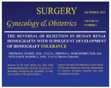 Address reprint requests to: Thomas Starzl, MD, PhD, Professor of Surgery, University of Pittsburgh, Thomas E. Starzl Transplantation Institute, UPMC Montefiore 7th Floor, South 3549 5th Ave., Pittsburgh, Pennsylvania, USA