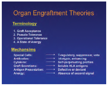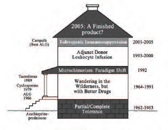 When assembled, the puzzle pieced together by Knobil’s studies resulted in a new chapter in reproductive physiology and obstetrics—a major paradigm shift, defined as: “...the ability to envision a reality that is entirely different from the accepted view.” That brings me to the subject of my talk today: The Mystique of Organ Transplant. The mystique was caused by a pervasive early error that precluded the orderly development of transplant immunology and limited progress almost exclusively to the development of more-potent immunosuppressive drugs (Figure 5).