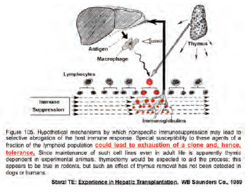 In contrast, my contention throughout was that clonal exhaustion-deletion—not of a cell, but of a cell population—was the seminal mechanism of organ alloengraftment. This view was depicted graphically in my 1969 textbook on liver transplant, and described in the highlighted caption. However, neither the existence nor the importance of clonal exhaustion-deletion was formally proved until the early 1990s. Consequently, the hypothesis was difficult to sustain (Figure 33).