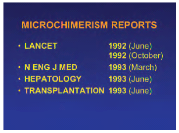 The reports in 1992 and 1993 of these microchimerism discoveries provoked a firestorm. Donor leukocyte chimerism had not, to my knowledge, been proposed to be a factor in organ engraftment a single time in the 30 years of scientific literature between 1962 and 1992. Moreover, if our interpretation of the findings was valid, the perceived conceptual base of transplant immunology had crumbled (Figure 40).