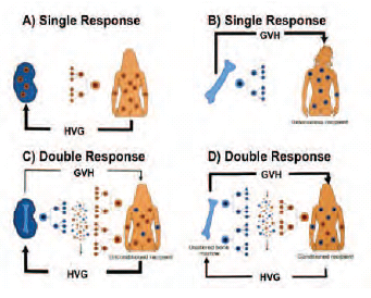 Stable leukocyte chimerism in both mouse models was achievable only when donors and recipients had a good histocompatibility match. Otherwise, the donor leukocytes were rejected or they turned the tables and rejected the immunologically defenseless recipient: graft versus host disease (GVHD) (Figure 11).