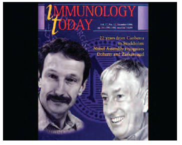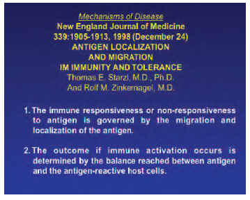 A notable exception was Rolf Zinkernagel in Zurich, shown here on your left with Peter Doherty, his co-Nobel Laureate of 1996. In the 1970s, Zinkernagel and Doherty had elucidated the mechanisms of the MHC-restricted T-cell immunity induced by noncytopathic microorganisms—and by inference by allografts. However, the opposite outcome of tolerance had remained enigmatic. In 1993, and unaware of our 1992 publications, Zinkernagel independently proposed a paradigm of acquired tolerance to pathogens that was almost identical to our organ tolerance paradigm (Figure 49).
