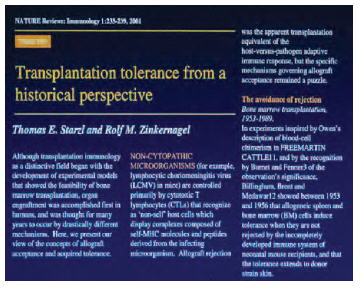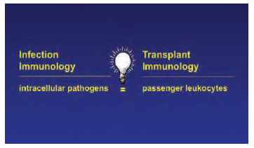 With the mutual recognition that the Pittsburgh and Zurich investigations were on parallel pathways, a crossover review was published in a December 1998 issue of the New England Journal of Medicine. Equivalent roles were attributed to allogeneic leukocytes and noncytopathic microorganisms. Consequently, much of the article consisted of descriptions of a range of transplant outcomes and their infection analogues (Figure 50).