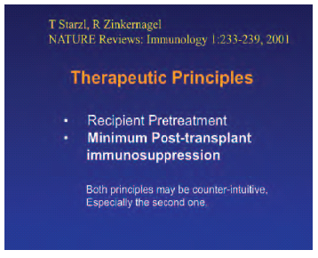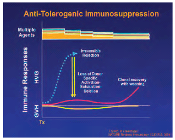 However, immunosuppression, without which human transplant would not be possible, is a 2-edged sword. In this second review with Zinkernagel in 2001, our foremost conclusion was that the widespread practice of heavy, multiple-drug immunosuppression during the early days and weeks after organ transplant is antitolerogenic (Figure 56).