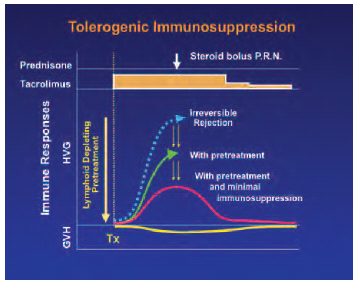 We proposed in our 2001 article that immunosuppression could be made more tolerance-friendly by applying 2 therapeutic principles, singly or together. The first principle was recipient pretreatment to weaken the immune response in advance of transplant, making clonal deletion easier of the impending donor-specific response. The second was the use of as little posttransplant immunosuppression as possible (Figure 58).