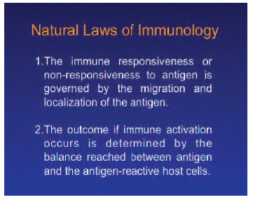 However, the main purpose of the article was to propose the 2 generalizable rules of immunology that are printed here in white type. The most-fundamental rule is that the immune response is regulated by the migration and localization of antigen. The secondary principle is that the outcome of an immune response is determined by balances that I will explain by example. Bear in mind there had been no answers to the immune regulation issue of Rule 1 in the more than 100 years since the humoral and effector mechanisms of the immune system were discovered by von Behring, Metchnikoff, Bordet, and Erlich (Figure 51).