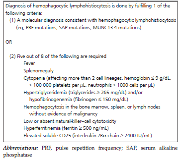Table 2. Diagnostic guidelines for hemophagocytic lymphohistiocytosis.