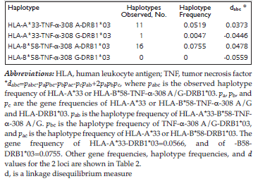 Table 2. Linkage Disequilibrium Between HLA-A*2, -A*33, -B*58, and -DRB1*03 Alleles and TNF-α-308 G/A