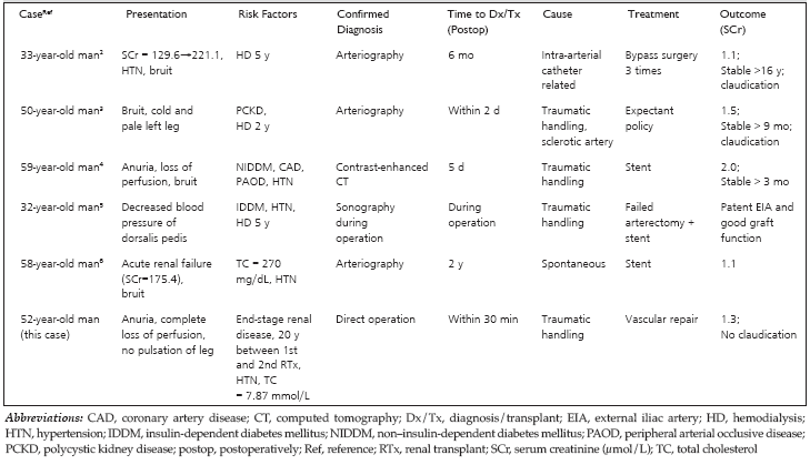 Table 1. Summary of 7 Cases of External Iliac Artery Dissection After Renal Transplant
