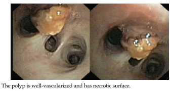 We can speculate that chronic colonization of Pseudomonas aeruginosa was the risk factor for developing chronic bronchitis, and a bronchial reaction in the infected polyp formed in our patient; however, recurrent Pseudomonas infection is very common after transplant in cystic fibrosis, and bronchial polyps have never been reported. In the present case, there was an attempt to treat the endobronchial polyp in a stepwise manner, but the bronchoscopy was complicated by recurrent hemorrhage and the lobectomy was performed. Such resections offer important options in caring for postoperative lung graft recipients.4,5,14