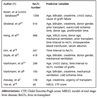 22. Hong JC, Kaldas FM, Kositamongkol P, et al. Predictive index for long-term survival after retransplantation of the liver in adult recipients: analysis of a 26-year experience in a single center. Ann Surg. 2011;254(3):444-448; discussion 448-449.