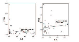 The cytokines IL-6 and TNF-α are important in inflammation. Therefore, the absence of a correlation between PTX-3 and these markers suggests that PTX-3 may not be useful as a marker of inflammatory status in patients after kidney transplant. Measurement of hsCRP may be more useful than PTX-3, and further study is needed to determine the factors that affect PTX-3 production after a kidney transplant.
