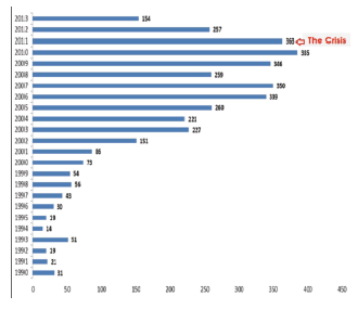 Figure 1. The Total Number of Kidney Transplants in Syria (1990 to 2013)