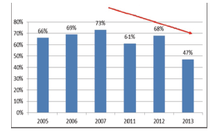 in 2013 (6 pmp) (Figure 1), which was a reduction of 60% fewer kidney