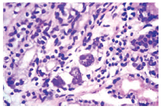 Figure 1. Gastric Biopsy Showing Cytomegalovirus Inclusion Body in the Cell of Gastric Gland (H&E Stain)