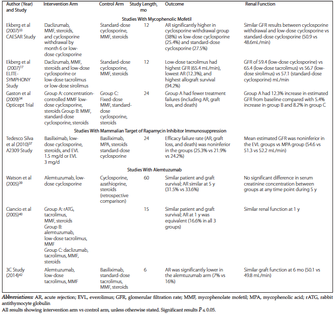 Other studies have included everolimus with CNI minimization; however, no overall differences in renal function, rejection rates, or survival were observed.