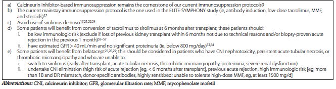Complete omission of CNI is usually planned de novo and involves using another immuno­suppressant (Table 1).