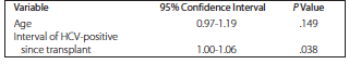 interval between transplant and acquisition of HCV infection (P = .013)
