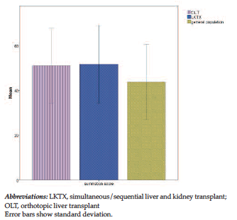 found in the general population. In the OLT and LKTX groups, scores did not