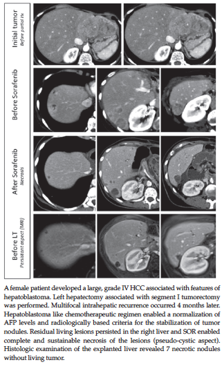disappearance of the HCC lesions (CT-scan and MRI) in November 2012. Thanks to a