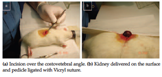 Renal transplant (RT) is the best form of renal replacement therapy for end-stage renal disease because it can improve quality of life, has a survival advantage, and is cost effective.1 The present success of RT has evolved through advancements in the milestones of surgical techniques relevant for RT, understanding of the immunologic processes, immunosuppressive agents, tissue typing and cross-match techniques, and ongoing research in the field of induction of tolerance, xenotransplantation, and organ bioengineering.2 Experimental RT in rats has played a vital role in enhancing the understanding of the immunologic processes and application of immunosuppressive agents in clinical human RT.3-5 For a successful RT in rats, in addition to paying attention to the pre-, intra-, and postoperative care of donors and recipients, a thorough understanding of the details of the anatomy is mandatory to successfully complete donor nephrectomy and recipient RT procedures.