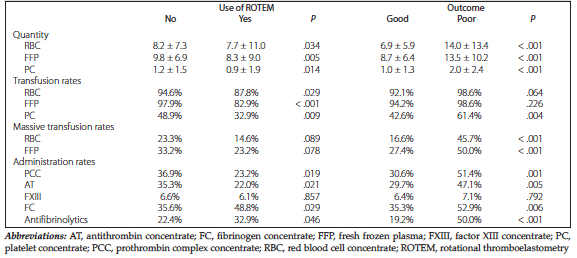 Patients in the ROTEM group received significantly less RBC (P = .034), FFP (P =