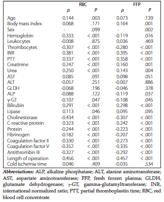 Table 3. Overview of Univariate Correlations of Demographic, Preoperative Laboratory, and Perioperative Variables With Quantitative Blood Product Requirements