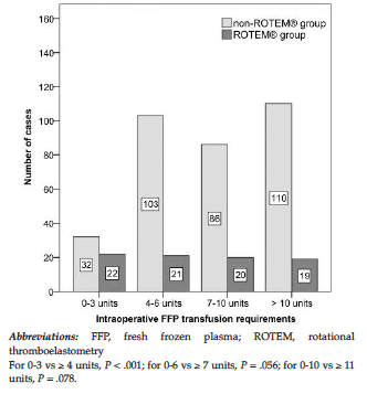 Figure 2. Categorized Fresh Frozen Plasma Requirements Differentiated According to Use of Rotational Thromboelastometry