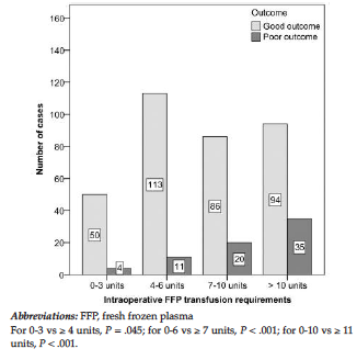 Figure 4. Categorized Fresh Frozen Plasma Requirements Differentiated According to Outcome