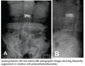 vertebral body. After removal of balloons, polymethylmethacrylate was injected